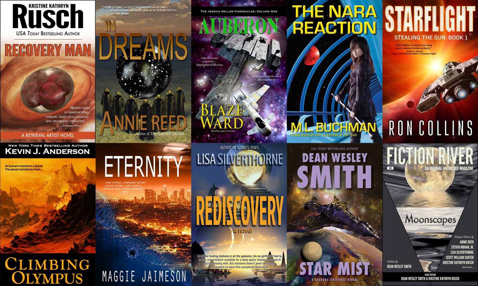 Anthea Sharp, Lee Allred, Annie Reed, Leah Cutter, Dayle A. Dermatis, Kristine Kathryn Rusch, Dean Wesley Smith, Kevin J. Anderson, Ron Collins, Leslie Claire Walker, Angela Penrose, Mark Leslie, Jodi Lynn Nye, and others.